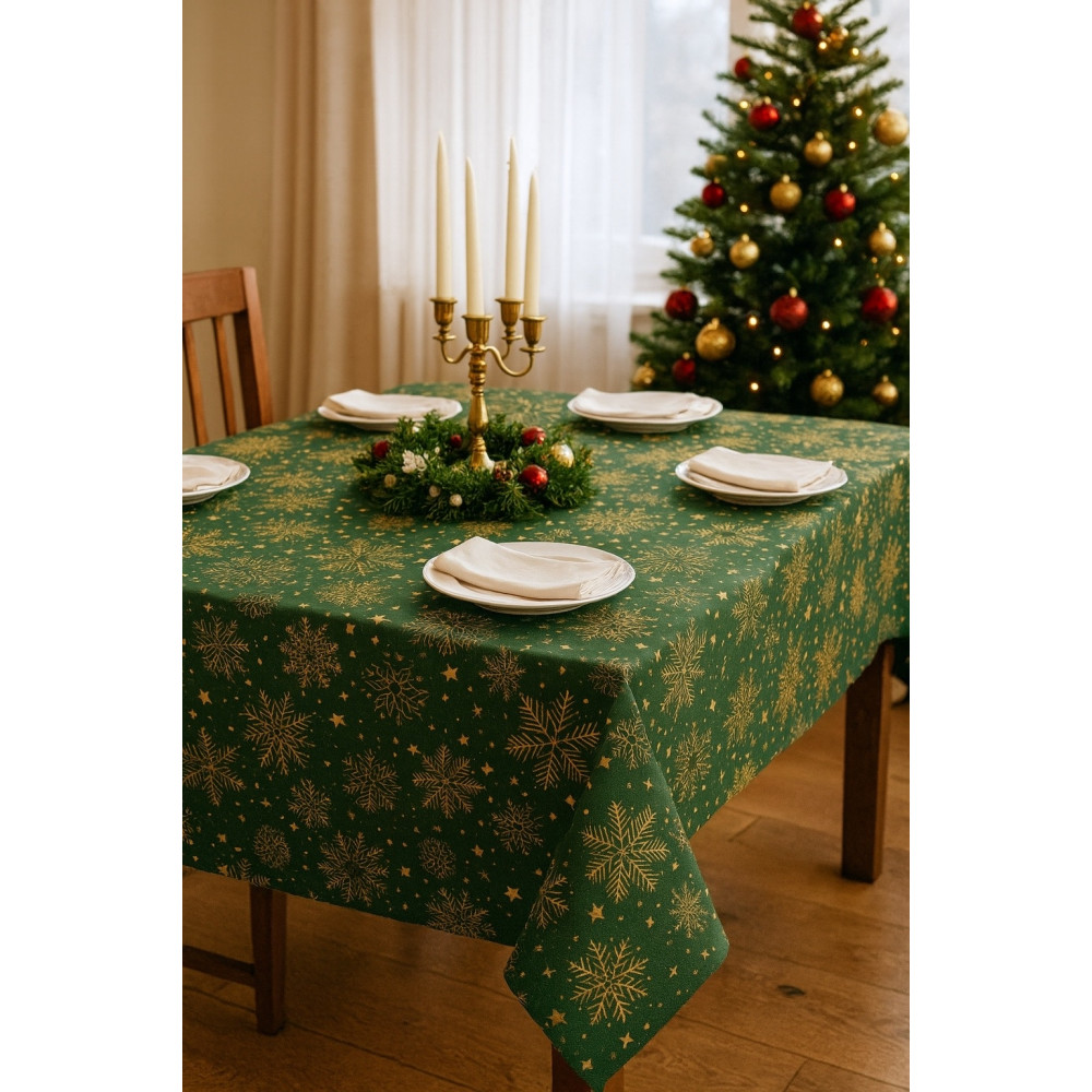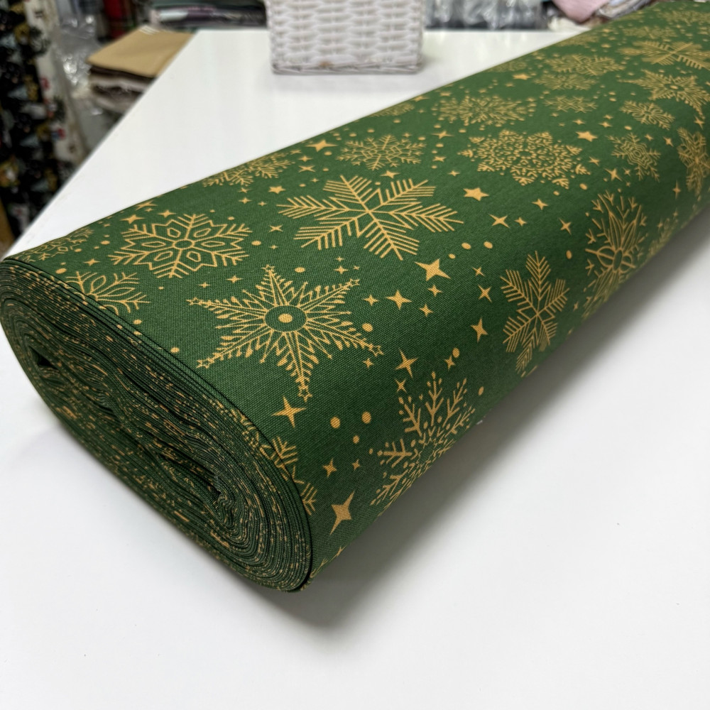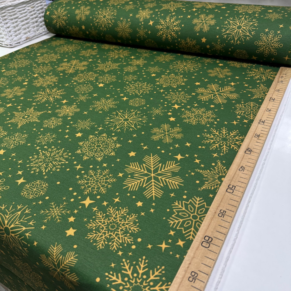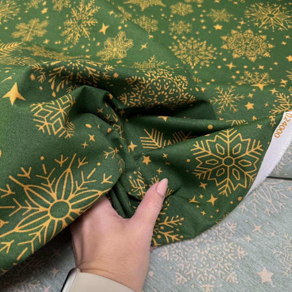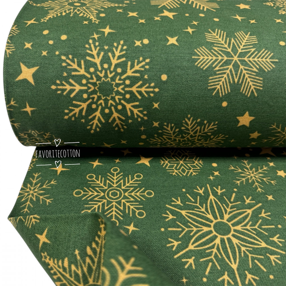 DUCK снежинки золото на зеленом